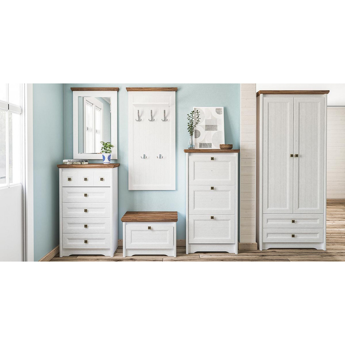 Классическая прихожая – это вовсе не громоздкая, массивная композиция, создающая в малогабаритной комнате ощущение замкнутости и тесноты. Убедиться в этом поможет полная легкости и изысканности модульная прихожая Тиволи от фабрики Мебель-Неман. Выполнена в очаровательном французском стиле, она предельна невосома и изящна, и в тоже время – вместительна и функциональна.