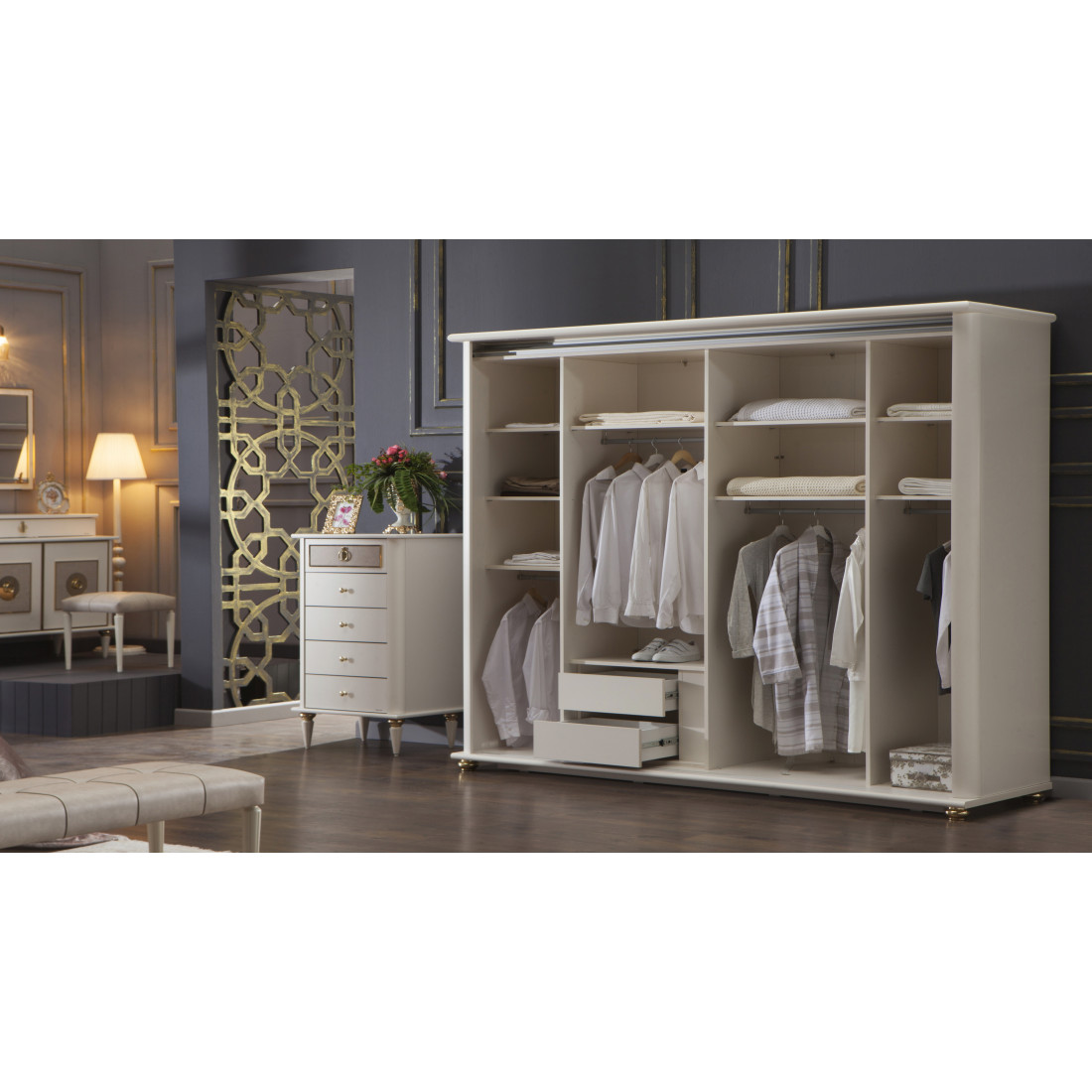 Шестистворчатый шкаф для одежды Rimini Solo РМШ2/6 (s) (слоновая кость)